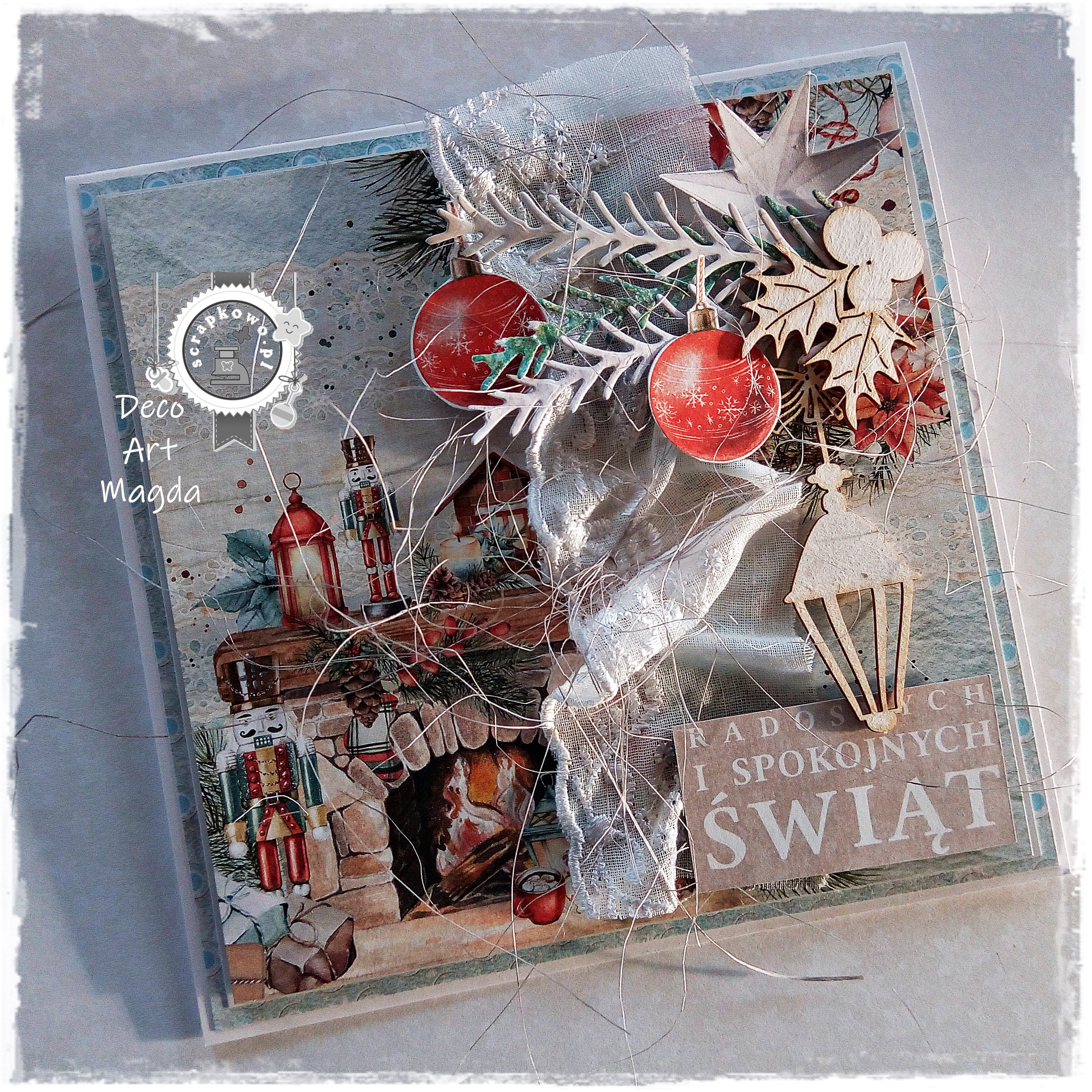 tekturkowymi motywami świątecznymi i wycinanymi elementami z arkusza dodatków ;)...